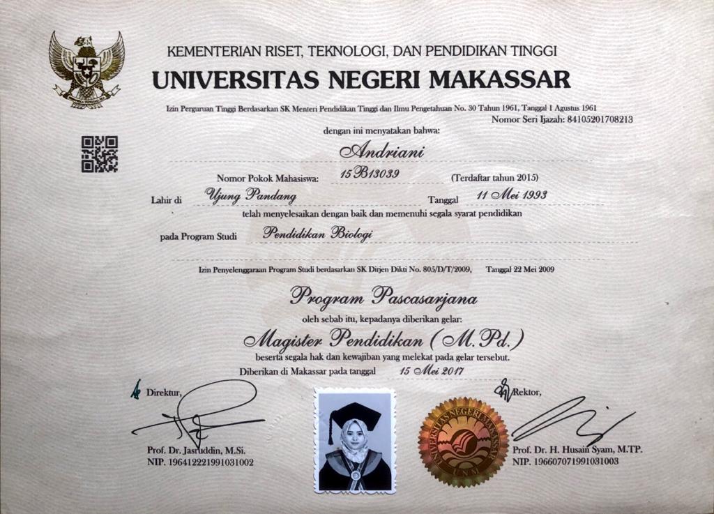 Nama dan Gelar : Andriani, S.Km., M.Pd.