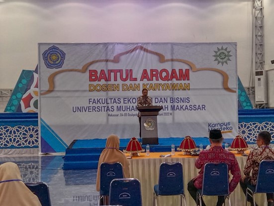 Fakultas Ekonomi dan Bisnis (FEB) Unismuh Makassar melaksanakan Baitul Arqam untuk dosen dan karyawan. Kegiatan ini berlangsung selama dua hari, 4-5 Juni 2022, diikuti 80 peserta di Gedung Balai Sidang Muktamar Unismuh Makassar