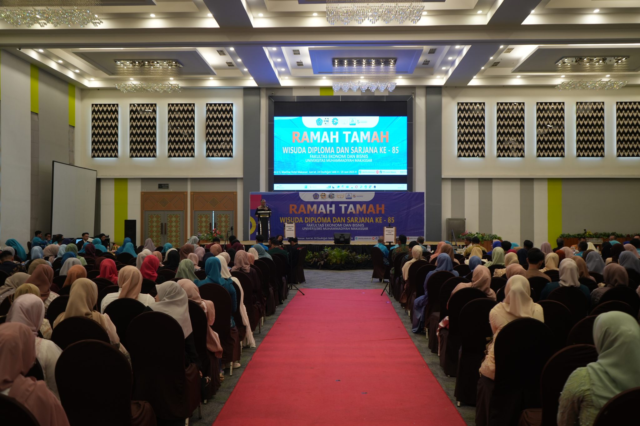UNISMUH.AC.ID, MAKASSAR — Fakultas Ekonomi dan Bisnis (FEB) Universitas Muhammadiyah (Unismuh) Makassar menggelar acara ramah tamah menjelang Wisuda Diploma dan Sarjana ke-85. Kegiatan yang diikuti sekitar 350 alumni ini berlangsung di Max Ballroom, MaxOne Hotel, Makassar, Jumat (21/6/2025).