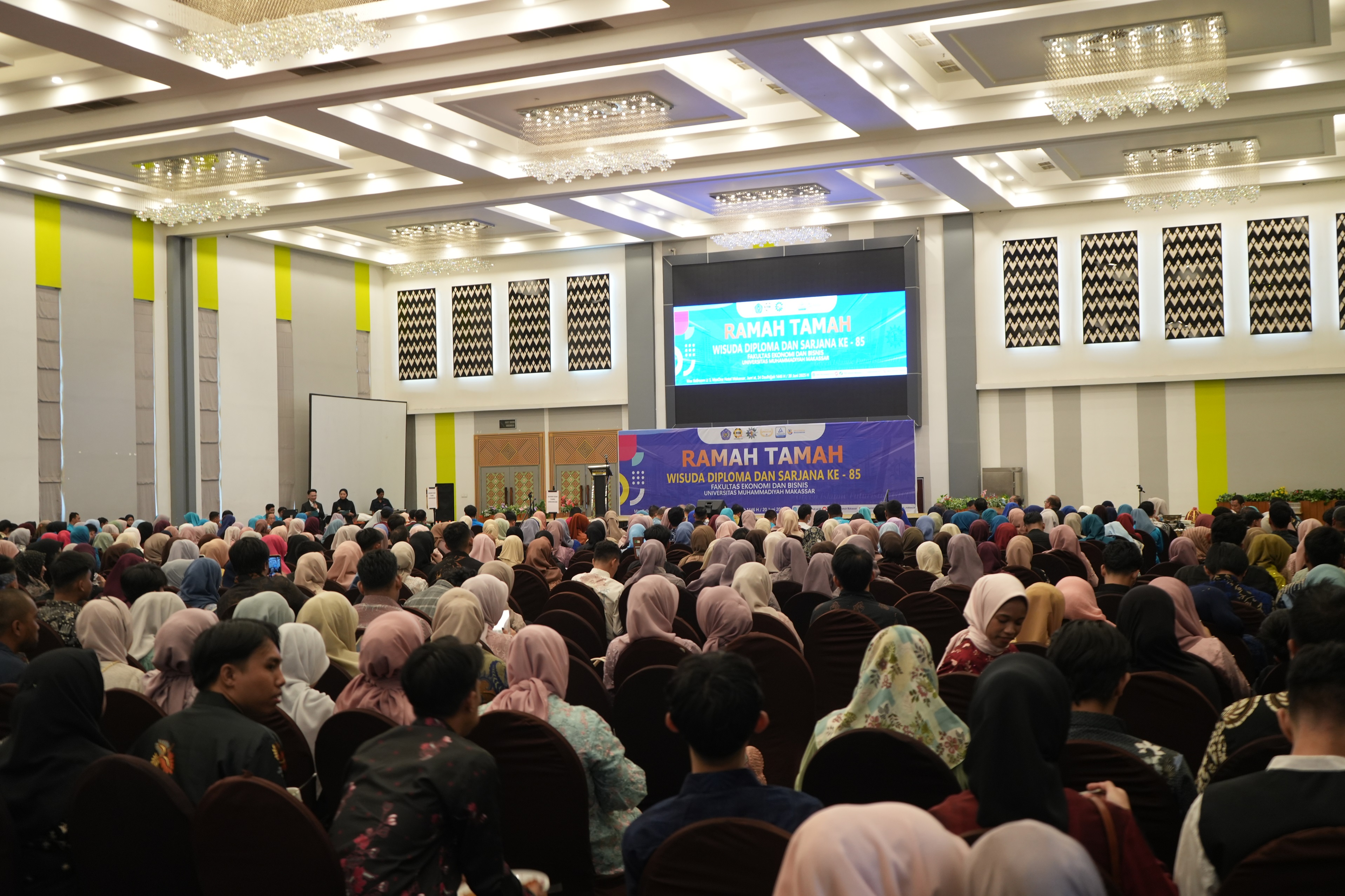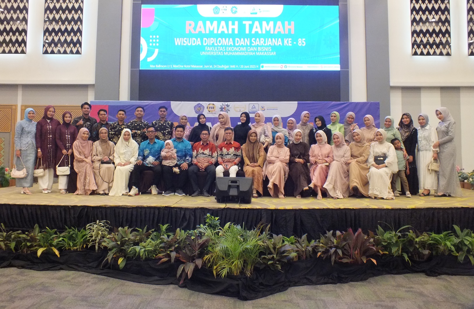 Makassar. Luar biasa meriahnya ketika 350 alumni Fakultas Ekonomi dan Bisnis bersama pendamping serta Pimpinan Fakultas, Pimpinan Universitas dan Tamu undangan mengikuti acara ramah tamah pada hari Jumat, 20 Juni 2025 di Max Ballroom MaxOne Hotel Makassar.