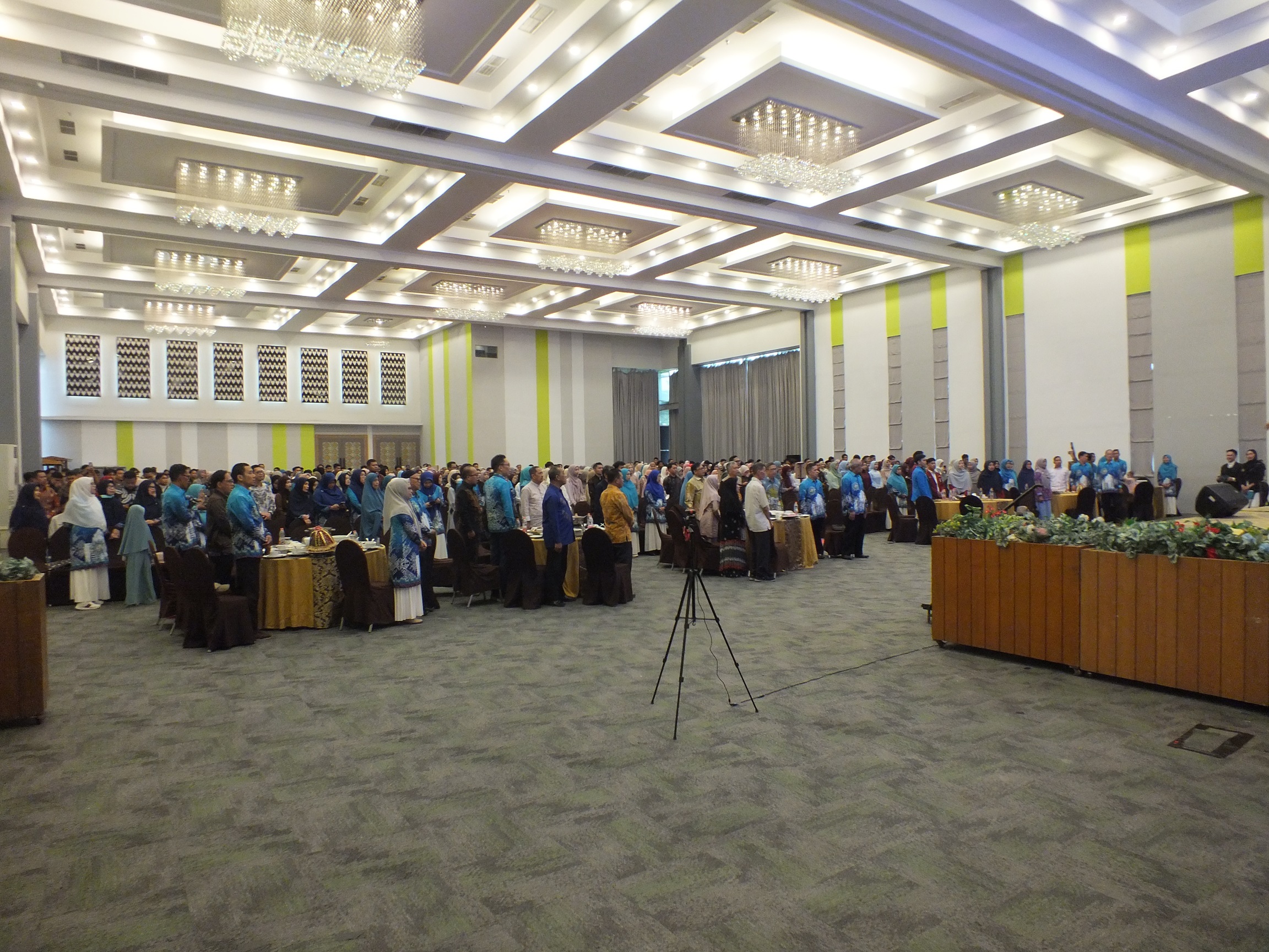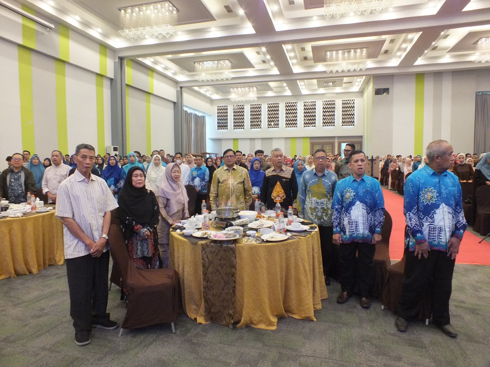 Seluruh peserta acara ramah tamah secara hikmat menyanyikan lagu Indonesia Raya dan Mars Muhammadiyah