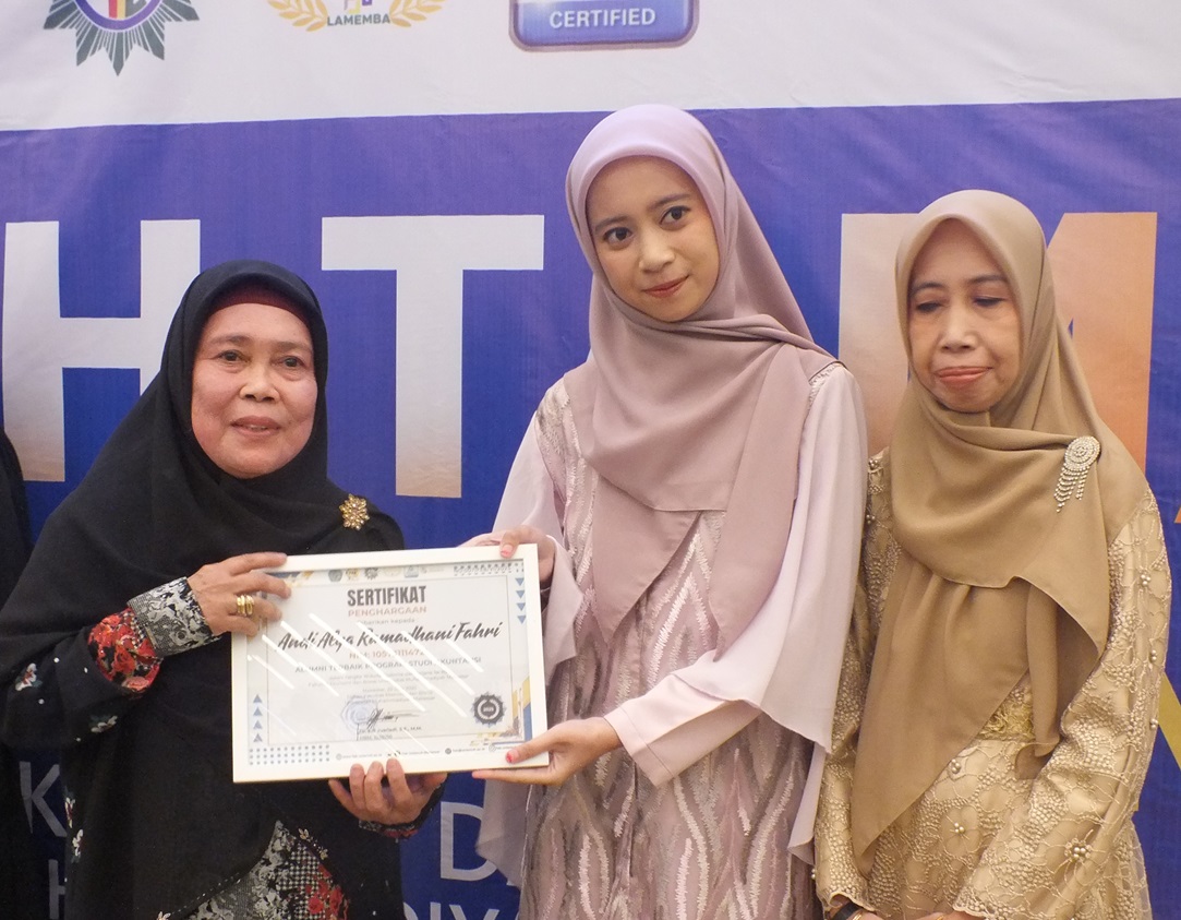 Penyerahan piagam Penghargaan Alumni Terbaik dari Prodi Akuntansi oleh Ibu Dr. Hj. Ruliati, MM.